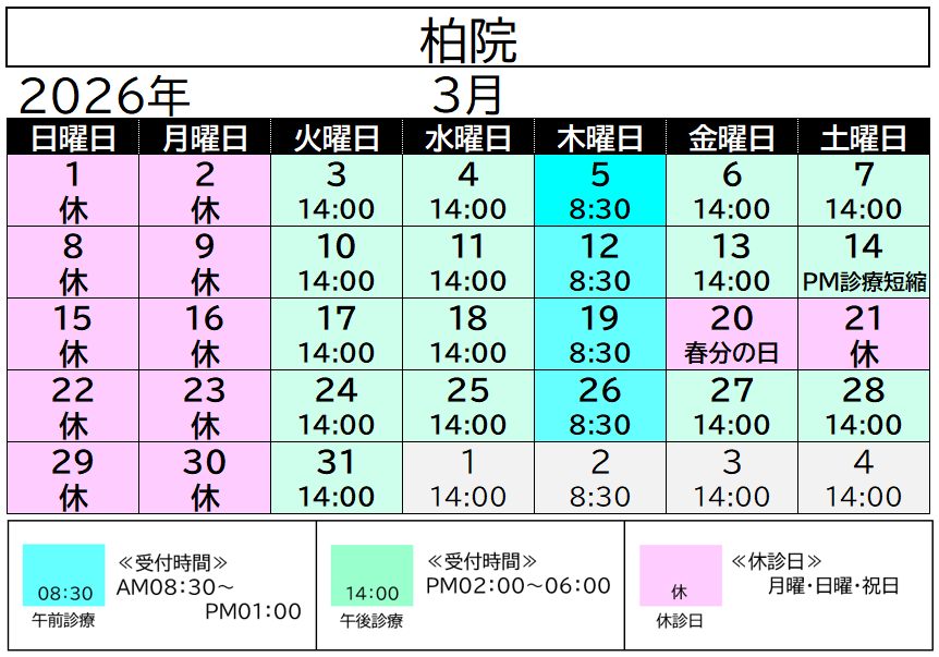 3月の休診日は